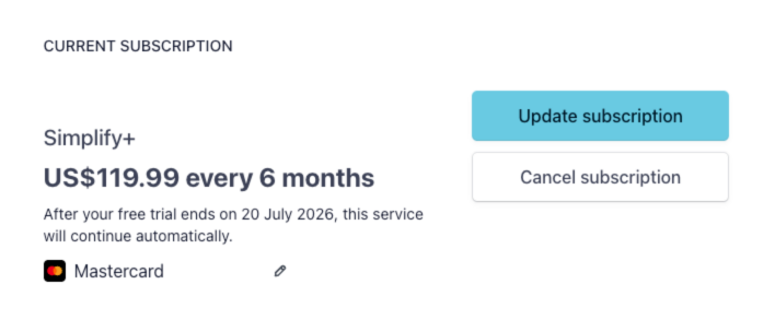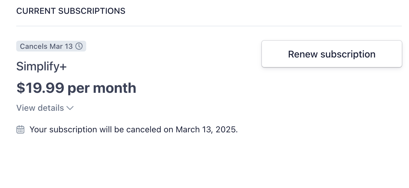 This article talks about how to renew, cancel, or update your Simplify+ subscription.